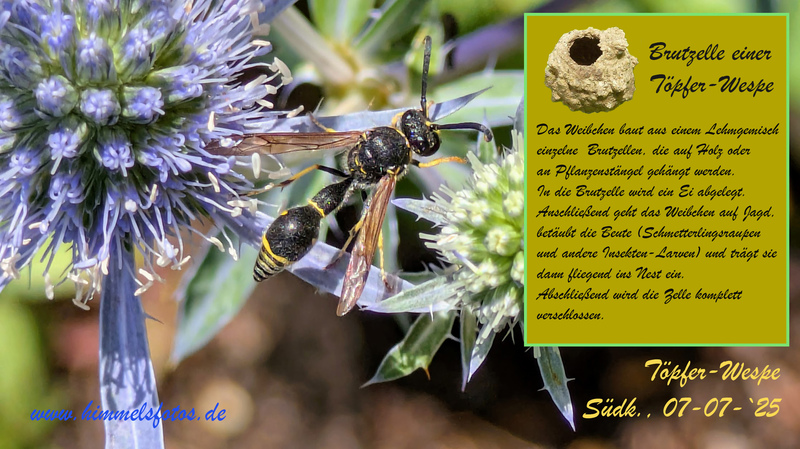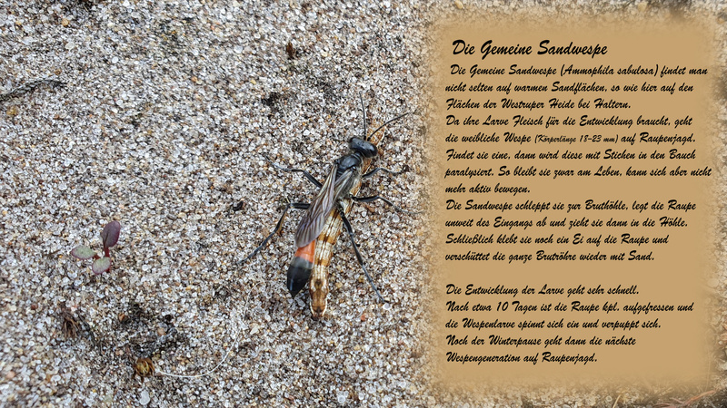 Angefangen hat es bei nachstehenden Wespen - die nichts mit den von Menschen verhassten, stechenden Wespen gemein haben - mit der Sandwespe, die uns