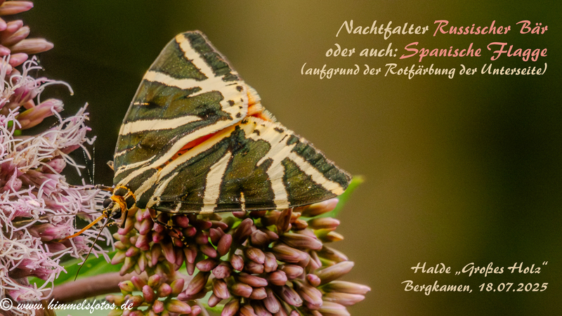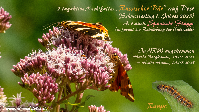 Hier der Beweis mit dem tagaktiven Nachtfalter, Falter des Jahres 2025, dem "Russischen Bären" oder auch der "Spanischen Flagge" genannt aufgrund seiner Färbung.