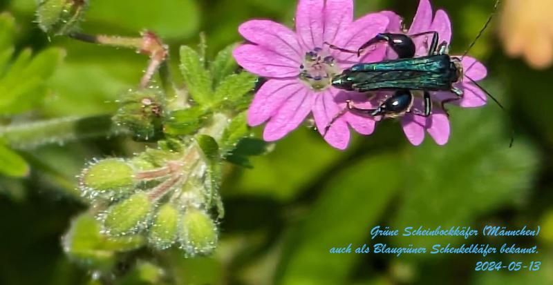 Wenn man mit offenen Augen durch die Natur wandert und der Blick über die aufblühenden Pflanzen geht, erblickt man neben schönen Tag- und Nachtfaltern z.B. auch Käfer mit besonders schönem Aussehen.