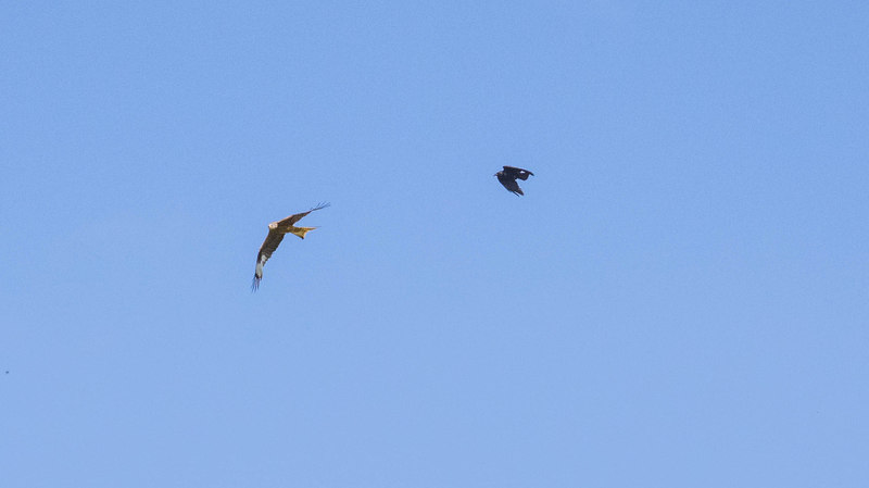 Rabenkrähen dulden normalerweise keine Greifvögel in ihrem Revier. So werden Greifvögel attackiert, wenn diese in ihr Brutrevier eindringen. Dabei gehen sie sehr unerschrocken